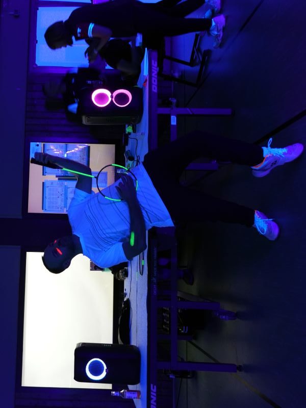 Freunde des BCW, am 31.1.26 haben wir wieder einmal bei True Audio in Königswinter das Equipment zum Spielen im Schwarzlicht ausgeliehen und in der Halle aufgebaut.